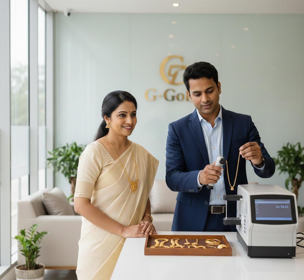 Visit G-Gold with your gold items and a valid ID. We test purity, evaluate value based on live rates, and pay instantly if you agree.